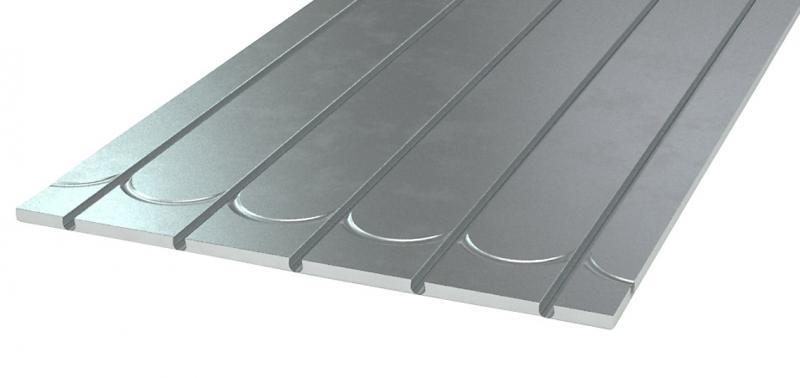 Systemet består af en trykstærk EPS 300 isolering med spor og vendespor samt en pålimet aluminium varmefordeling der dækker hele pladen. Systemet er lige velegnet til nybyggeri som til renoveringsopgaver.