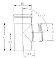 Afløbsgrenrør 50mm rustfri - 87,5gr