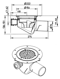 BLÜCHER Domestic-150 justerbar afløb for vinylgulve, med sideindløb og vandret Ø75mm udløb, samt indbygget vandlås. Lav model. |