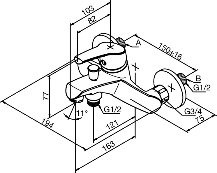 Damixa Rowan vægbatteri til kar/brus - Krom. • Keramisk kartusche • Med omskifter • Rub Clean • 1/2" tilslutning for bruser • Standard 150mm CC • Inkl. rosetter og excentriske forskruninger