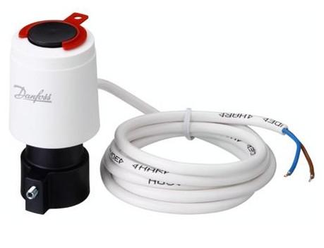 Termoaktuator type TWA monteres på ventiltyperne RA 2000, RAV eller VMT. Sammen med rumtermostat RMT/RET/CF-RS eller kloktermostat TP5000/P7000 anvendes TWA termoaktuatoren til ON/OFF_regulering af radiatoranlæg, gulvvarmeanlæg og zoneopdelte anlæg. TWA Ttermoaktuatorer leveres i forskellige ventiltyper og tilslutninger i normalt åbne- (NO) og normalt lukkede-(NC) versioner. Denne aktuator Danfoss nr.: 088H3112/ 082F1023 er NC |