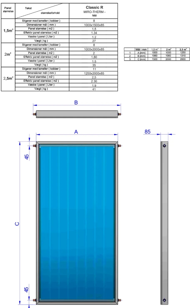 Effektivt solvarmepanel på 2 m2 Classic solvarmepaneler er robuste og miljøvenlige. De er en del af Eldominvest's Green Line, som fokuserer på grøn energi til gode priser, uden kompromis på kvalitet. Vores solpaneler udmærker sig ved deres høje virkningsgrad, solide konstruktion og fokus på billig og miljøvenlig vedvarende energi. Classic panelerne er godkendte af det tyske prøvningsinstitut Solar KEYMARK. De er en af de førende instituter inden for solvarme og deres certifikat garanterer at solvarmepanelet er af den højeste kvalitet. Vi anbefaler vores solfangervæske til alle vores solpaneler. Se også vores komplette solvarmeanlæg for at få en samlet løsning med alle nødvendige dele. Detaljer: