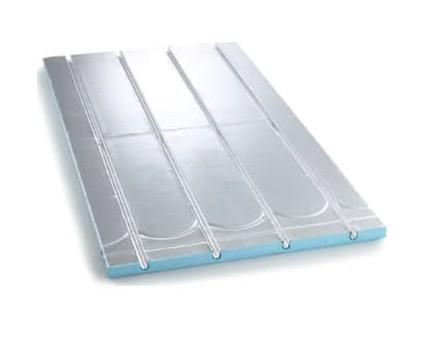 Nordic 25 mm gulvvarmeplade med vendespor og alu til 20 mm gulvvarmerør Nordic Gulvvarmeplade i XPS til 20 mm gulvvarmerør. Højde 25 mm. 25x600x1200 mm. 0,72 m2. Tilhører den nyeste type energibesparende gulvvarmeløsninger. Hurtig reaktionstid (ca. 30 min.) lav indløbstemperatur. Ligger tæt under det nye gulv. Høj trykstyrke (35 ton/m2) kan også benyttes til fliser. Er samtidig højisolerende. Kan let udlægges på stabilt, plant og bærende gulv af træ eller beton. ALT-I-EN plade med integreret vendespor, freløbsspor og højeffektiv aluminium varmefordelig på hele pladen. Specifikationer:
