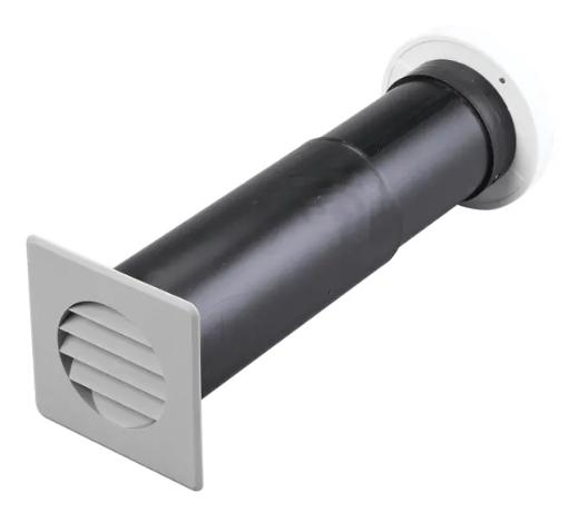 Teleskopventil Ø75 mm, 210/350 mm, grå/hvid, type 300 Komplet teleskopventil med murgennemføring, udvendig grå jalousirist og indvendig hvid tallerkenventil. Passer til murtykkelser fra 230-350 mm Med en teleskopventil får du en kompletløsning til naturlig ventilation i din bolig. Teleskopventilen består af en murgennemføring, udvendig grå jalousirist og indvendig hvid tallerkenventil. Passer til murtykkelser fra 230-350 mm. Der laves et hul i muren, så der er et svagt fald nedad og herefter indsættes teleskopventilen. På udvendig jalousirist anbefales det at tætne med fugemasse mellem mur og karm.