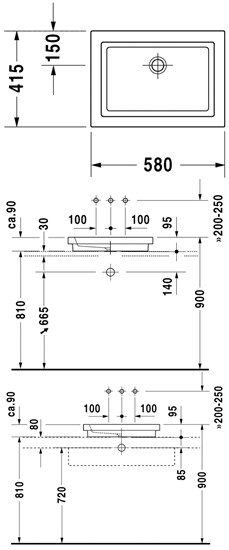 Duravit 2nd floor håndvask m/udslag til 1 hanehul 0317580000 |