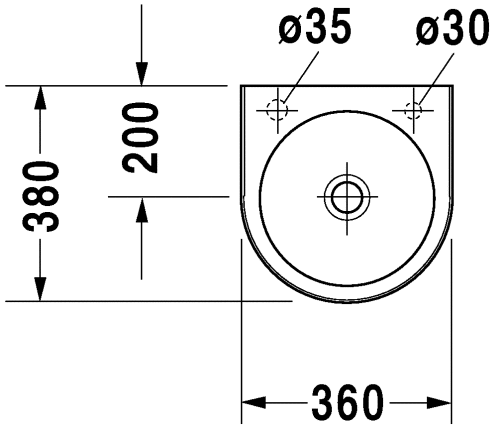 Duravit Architec 36 håndvask t/væg Formen på denne håndvask fra Duravit er enkel i sit udtryk, men alligevel anderledes i sin kombination af rund, bowlelignende vask og den brudte oval. Dette er en lille håndvask som er et alletiders valg til gæstetoilettet eller det lille københavnerbadeværelse.