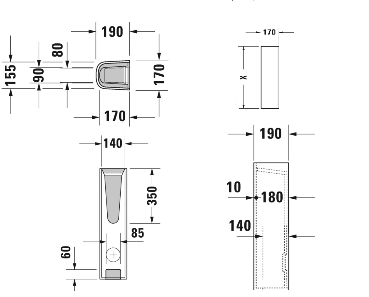 Søjle til Duravit D-code vask. OBS! Vask medfølger ikke.