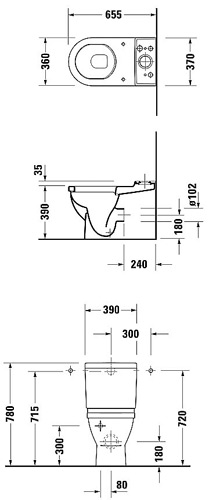 Duravit Starck 3 cisterne Duravit Starck 3 cisterne til kombination. Med Geberit indmad. Indstillet til 3/6 liter skyl. Tilslutning i venstre bund. |