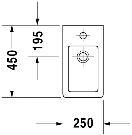 Duravit Vero 25 håndvask t/ væg Duravit Vero håndvask med overløb og hanehul. Den rektangulære form uden dikkedarer er og begrænsede størrelse er perfekt til det lille gæstebadeværelse, eller lille københavnerbadeværelse.