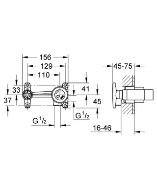 Grohe indbygningsdel til 2-huls håndvaskbatteri. Indbygning i væg. Specifikationer: