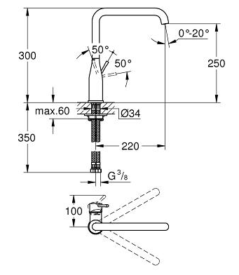 GROHE Essence New køkkenarmatur – funktionel perfektion i et elegant design Leder du efter perfekt funktionalitet samt et attraktivt design? Dette køkkenarmatur er det perfekte valg. Det indeholder en række praktiske funktioner forklædt i et elegant look: dens høje tud er perfekt til påfyldning eller skylning af høje gryder, og med valget af tre indstillinger af svingradiussen får du maksimal fleksibilitet til alle dine opgaver i køkkenet. Temperatur og volumenkontrol er ubesværet takket være GROHE SilkMove® keramisk patron. Finishen i GROHE StarLight® krom, gør rengøringen nem og armaturet bevarer sin fantastiske glans fremover. Leveres komplet med fleksible tilslutningsslanger og enkle instruktioner der gør installationen hurtig og problemfri.