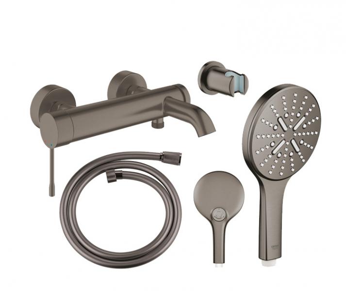 Grohe Essence New komplet badekararmatur m/SmartActive - Børstet hard graphite Består af