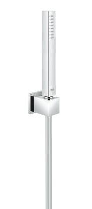 Grohe Euphoria Cube Stick Vægholdersæt 1 spray Flot håndbrusersæt fra Grohe Euphoria Cube i geometrisk design. Håndbruseren er ultra minimalistisk i sit firkantede design, hvor hoved og greb går i ét. Med de gode dyser og den lange bruserslange på 1250 mm får du en håndbruser som er yderst funktionel, både til brusebadet og til rengøring af bruseniche eller badekar. Håndbruseren har tilmed indbygget vandbesparende teknologi, der begrænser gennemstrømningen af vand til 9,5 l/min - du oplever stadig en optimal ydelse, men dit vandforbrug kan skæres ned med op til 50%. Som en ekstra detalje er bruseslangen udstyret med TwistFree, som sikrer at slangen ikke snor sig i badet. En lille detalje som er super praktisk og en god løsning på et kendt irritationsmoment! Bestående af: