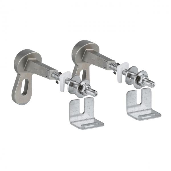 Grohe montagevinkel til fastgørelse af element i væg Man bruger dette sæt. så man undgår af skulle bore i gulvet hvis man evt. har gulvvarme. Med dette beslag kan indbygningscisternen fastgøres i væggen i stedet for gulvet.