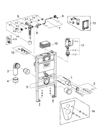 Grohe Rapid SL indbygningscisterne 82 cm - Top-/Frontbetjent En Grohe Rapid SL indbygningscisterne er det første skridt mod et væghængt toilet, som i dag bliver mere og mere populær. Det skyldes det pæne og enkle udseende samt den ekstra rengøringsvenlighed der følger med. Grohe Rapid indbygningscisterne er en af de bedste modeller på markedet og derfor en af vores mest solgte modeller. En Grohe Rapid indbygningscisterne gør det muligt, at placere toilettet på væggen i stedet for på gulvet. Det skjuler cisterne, vand- og afløbsrør i en såkaldt installationsvæg. Det er meget enkel, at bygge et træskelet omkring, eller bygge en hel væg op omkring. Den mest brugte løsning er, at bygge en lille væg op omkring cisternen og lukke toppen med en topplade der matcher møbelerme eller vinduesplade/karm på badeværelset. Denne plade skal blot fuges fast, på den måde kan man også komme til cisternens indmad hvis det skulle blive nødvendig. Husk at du udover cisternen også skal du bruge en betjeningsplade eller betjeningsknapper, og til sidst en hængeskål med sæde. Indbygningscisternen leveres med et selvbærende stålramme som er pulverlakeret, justerbare væg og gulvbeslag samt helstøbt isoleret cisterne, og er fabriksindstillet med et dobbelt skyl på 6 eller 9 liter. Indbygnigscisterne passer til alle hængeskåle med en boltafstand på 18 eller 23cm. Dette betyder at Rapid indbygningscisternen passer på stort set alle hængeskåle på markedet. Så er du fri for, at tænke andet end designet når du skal vælge din hængeskål. Vandet kan tilsluttes fra venstre, højre eller bagfra og der medfølger en tomrørsfiksering, som sikre mod utætheder. Indbygningscisternen leveres komplet med afløbsbøjning, fremføringshylster, ferulesæt og monteringsbolte. kort sagt alt hvad du skal bruge til cisternen. Det eneste du skal tilkøbe er en betjeningsplade. Alle de Grohe betjeningsplader – og knapper der passer til denne model finder du under relaterede varer. Her finder du også de mest populære hængeskåle. Mål: