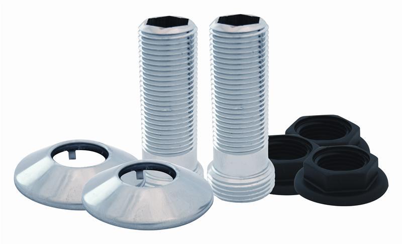 Forskruningssæt til brusekabine, længde 65mm inkl. roset og møtrik. Disse bruges som gennem føring af det kolde og varme vand i kabinen til brusebatteriet.