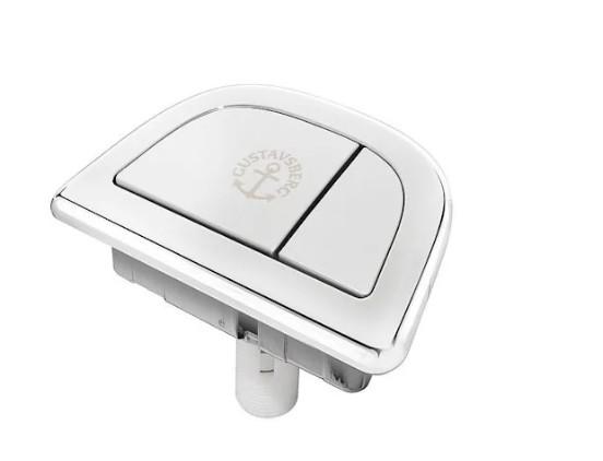 Gustavsberg lav trykknap Duo, krom til Nautic toilet fra 2017 og frem Denne trykknap er med dobbeltskyl, og passer til Gustavsberg Nautic 15XX Fra 2017 og frem Er du i tvivl om dit Gustavsberg Nautic toilet er fra før eller efter 2017, kan dette nemt tjekkes ved at tage cisternekappen af, og se om slangen til skyllemekanismen er hvid eller grå. Hvid slange betyder at toilettet er fra 2017 og frem. Grå slange betyder at det er fra før 2017 Tekniske specifikationer: