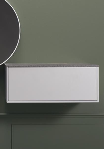Sidemodul med SmoothOpen™-skuffesystem, som er en kombination af push-open og dæmpet lukkefunktion. Kan monteres sammen med skab til håndvask eller som et helt fritstående modul. Kombineres med bordplade. Der er en måtte i skuffen, som gør rengøringen nemmere. Leveres færdigmonteret. Skuffebelysning, eludtag og håndtag fås som tilvalg.