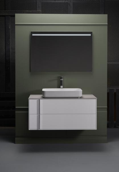 Skab til håndvask med SmoothOpen™-skuffesystem som har både push-open-funktion og dæmpet lukkefunktion.