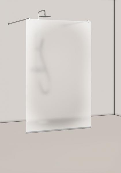 Monteringsvenlig fast lige brusevæg, som monteres midt på væggen med to stænger. Stangen er 1200 mm og kan afkortes til en valgfri længde. 8 mm hærdet sikkerhedsglas. Højde 2000 mm. Ved køb af bredden 1270 til montering i et hjørne, skal du købe en ekstra vægprofil, 1450366.