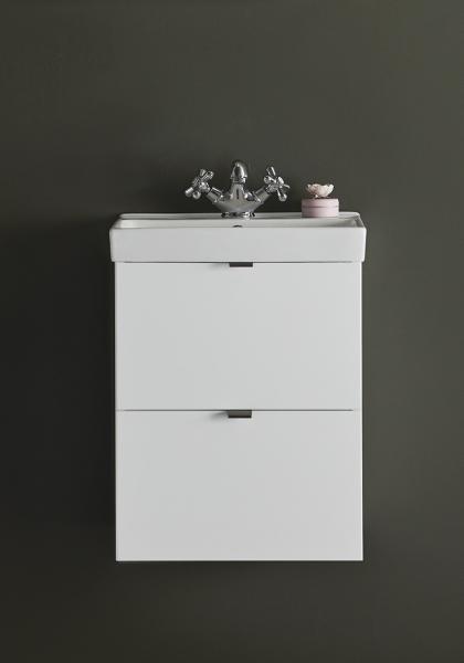 Hafa Neat 420 underskab m/skuffer - Hvid Badeværelsesskab med to soft close skuffer. Enkelt at montere for en person ved hjælp at vægskinne og justerbare beslag. Forberedt for både væg- og gulvafløb i bagkant. Leveres færdigmonteret. Suppler med en PUM-vandlås til kommode, varenr. 126 56 00. Greb og vask skal tilkøbes.