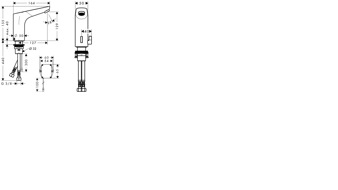• funktion kan begrænses ved håndvask med forhøjning eller meget bred håndvaskkant (> 75 mm), funktionel begrænsning som følge af for stor afstand