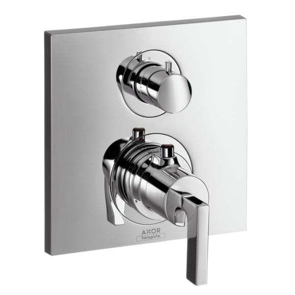 Hansgrohe Axor Citterio termostatbatteri med afspærring og omskifter. Med vingegreb. Kappesæt bestående af 2 greb og roset. Kombineres med Ibox Universal og lækagesikringer (se relaterede varer nedenfor). |