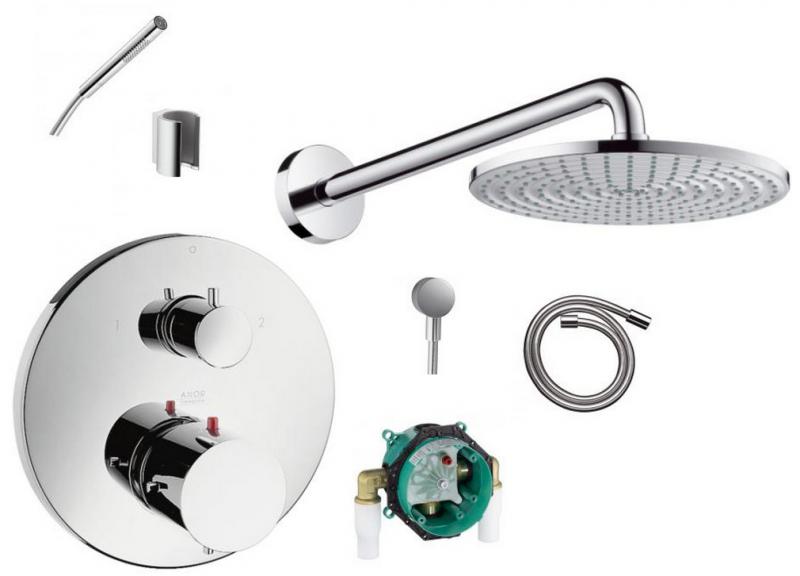 Super flot og tidsløst brusesystem fra Hansgrohe. Alt passer sammen og er klar til montering. Vi kan ikke garantere du bliver glad for det, men det er tæt på! Består af: - Axor Starck termostatarmatur med afspærring og omskifter - Ibox universal (indbygningsdel) m/lækagesikringer - Axor Starck slangeudtag - Axor Starck håndbruser (med normalestråle og Rubit rengøringsfunktion) - Axor Starck bruseslange 1,25mtr (med rengøringsvenlig glat overflade) - Axor Starck bruseholder (parkeringsplads) - Raindance Air hovedbruser Ø240mm (inkl. brusebøjning = L: 380mm) Rainair brusestråle (med kugleled, Rubit rengøringsfunktion og inkl. stabilitetsroset) Gennemstrømning ved 3 bars vandtryk: 18 l/min. |