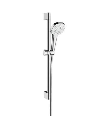 Hansgrohe Croma Select E ECO brusesæt - 3 Spray Med Croma Select E Vario brusersæt fra Hansgrohe, kan du ikke blive andet end fornøjet. Håndbruseren i det smarte soft-cube design tilbyder 3 forskellige stråletyper, der vælges enkelt og intuitivt med den praktiske Select-knap. EcoSmart-teknologi: Reducerer vandgennemstrømningen og sparer således både vand og energi. Dermed har du mulighed for at få den stråletype, der passer til netop dig og dine behov. På den 65 cm lange bruserstang har du mulighed for at indstille bruserhøjden helt perfekt.