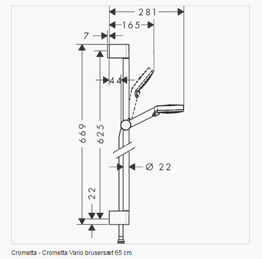 hansgrohe Crometta Vario brusersæt 2jet - Krom Brusebadssjov over hele linjen: Brusersættet Vario fra hansgrohe med en 65 cm lang bruserstang Brusersættet Crometta Vario 0,65 m udmærker sig med funktionalitet, kvalitet og masser af vandsjov. Det 100 mm store Crometta brusehoved fordeler vandet på hele kroppen (XXL Performance). Samtidig sørger to forskellige stråletyper for særlig vandsjov: Strålen IntenseRain med en gennemstrømningsmængde på maks. 14 l/min (ved 3 bar) virker vitaliserende og egner sig fremragende til at skylle shampoo ud af håret. Den kraftige regnstråle Rain med en vandgennemstrømning på maks. 11,5 l/min (ved 3 bar) kvikker hele kroppen op. Hurtigt skifte: Stråletyperne kan nemt vælges direkte på brusehovedet ved at dreje på stråleskiven. Den fuldt forkromede, fastlåselige bruseglider på den 65 cm lange bruserstang kan betjenes med én hånd. Herved kan bruservinklen ændres 45 grader, så den dejlige vandstråle kan indstilles efter eget ønske, for eksempel for at undgå, at håret bliver vådt. Den 1,60 m lange bruserslange sikrer stor bevægelsesfrihed, og den specielle tilslutning forhindrer, at bruserslangen snor sig. Den moderne kombination af strålende kromoverflader og den hvide stråleskive skaber spændende kontraster. Håndbruserens førsteklasses, friske design og den tidløst elegante bruserstang passer harmonisk til ethvert bademiljø. Kvalitet fra hansgrohe for langvarig glæde ved brusesættet