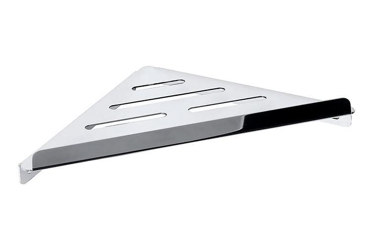 Kriss hjørnehylde til bad - Poleret rustfrit stål Elegant opbevaring til badet i form af en strømlinet brusehylde fra Kriss Athena. Med helt rene linjer og slankt design er dette et oplagt valg, når badeværelset skal stå helt skarpt og flot. Brusehylden har en kant, der forhindrer at shampooflasker vælter og sæbebarer glider af hylden. Med skjult montage får du ikke en mere enkel brusehylde til dit badeområde. Specifikationer: