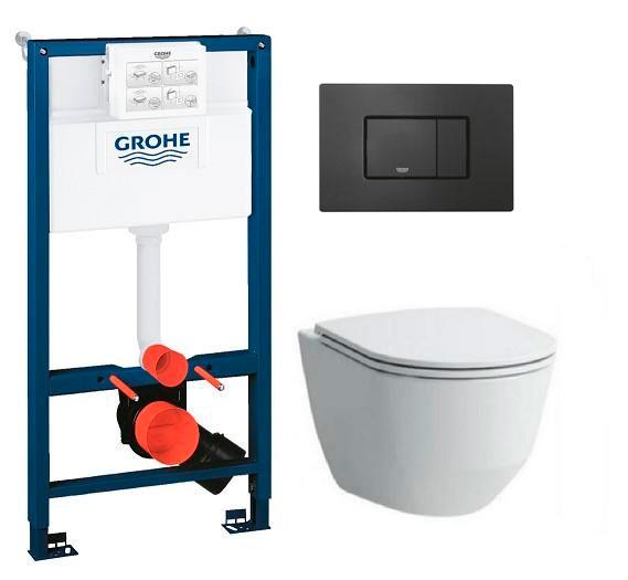 Laufen Pro LCC Rimless Compact toiletpakke inkl. mellem Grohe cisterne, mat sort betjeningsplade og sæde m/ soft-close Alt hvad der skal bruges til en komplet løsning. Består af