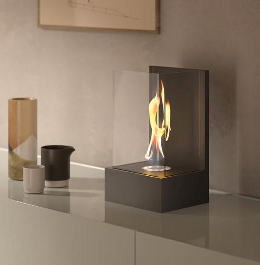 Altea biopejs til bord - Sort Biopejsen skaber en varm og behagelig stemning i rummet. Altea biopejs er en simpel og elegant biopejs med sit simple design i glas og sort keramik.