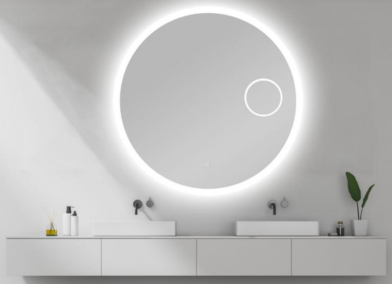 Sandra rundt spejl m/integreret LED lys, touch, kosmetikspejl og backlight - 90 cm Super flot spejl med integreret LED lys og backlight. Spejlet leveres med stikprop klar til brug inkl ophæng.