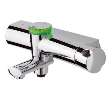 Eterna kar-og bruse armatur i krom med ecoled trykknap. Armaturet åbnes ved at trykke på ecoled knappen. Et grønt signalys vil blinke, det blinker også hvis du tager et miljøvenligt bad, dvs. under 2 min. Bruger du mere end to minutter vil det blinke rødt. Tager det sammenlagt mere end 4 min så slukker den automatisk. Det åbnes igen ved et enkelt tryk på ledknappen. Et super smart armatur der virkelig gør dig opmærksom på miljøet. Der følger 2 1,5 v batterier med. |
