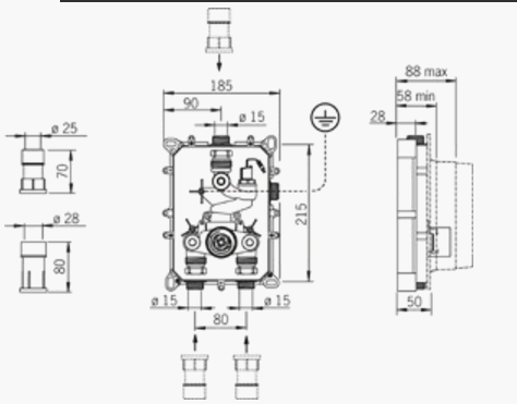 Indbygningsdel til berøringsfri håndvaskarmaturer og brusertermostater - termostatisk. Frontplade købes separat. Indbygningsdybde kun 58 mm. |