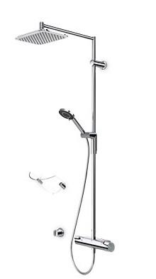 Termostatisk rain bruserarmatur med betjeningsvenlige greb. Brugervenlig omskifter og skoldningsspærre i grebet samt mængdebegrænser. Håndbruser med 3 stråletyper, for en mere komfortabel bruseoplevelse samt rengøringsvenlig anti-kalk si, bruserholder og vægholder. Hovedbruser: 257 x 197 mm