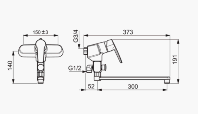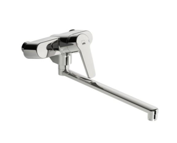Oras Saga brusearmatur til kar og brus m/svingtud - Krom Vægarmatur med svingtud (300 mm). Mulighed for begrænsning af temperatur og vandmængde. Inkl tud og omskifter