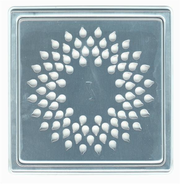 Design rist og ramme i rustfri børstet stål. Rammen skal altid have forbindelse med gulvafløbet og fuges tæt, BRUG ALDRIG SILICONE