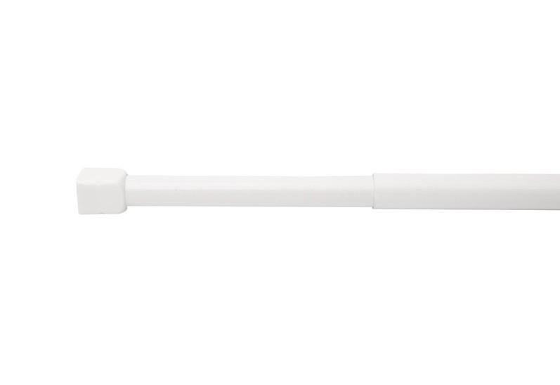 Ridder Eco Teleskopstang - Krom - 70-115 cm Denne teleskopstang bruges på badeværelset til ophæng af badeforhæng. Stangen er produceret i aluminium i en kromfarvet finish med hvide ender af plastik. Teleskopstangen er fleksibel, da den er justerbar i længden, så den passer til dit badeværelse. Desuden kan den nemt beskæres efter ønske. Teleskopstangen er nem at montere, da den blot fastspændes mellem væggene uden boring.