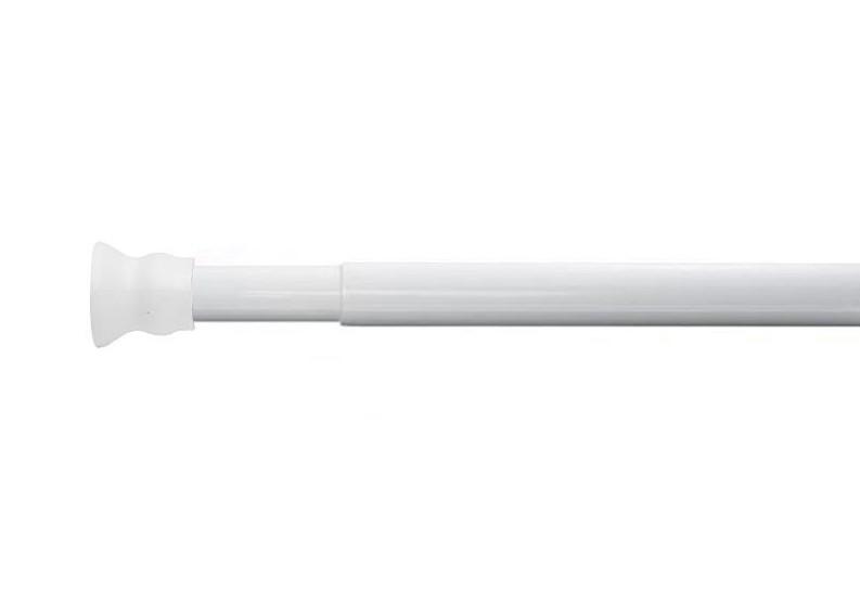 Ridder Teleskopstang - Hvid - 110-185 cm Denne teleskopstang bruges på badeværelset til ophæng af badeforhæng. Stangen er produceret i aluminium i en kromfarvet finish med hvide ender af plastik. Vægbeslagene for enden af teleskopsstangen er udstyret med en anti-slip funktion. Teleskopstangen er fleksibel, da den er justerbar i længden, så den passer til dit badeværelse. Desuden kan den nemt beskæres efter ønske. Teleskopstangen er nem at montere, da den blot fastspændes mellem væggene uden boring.