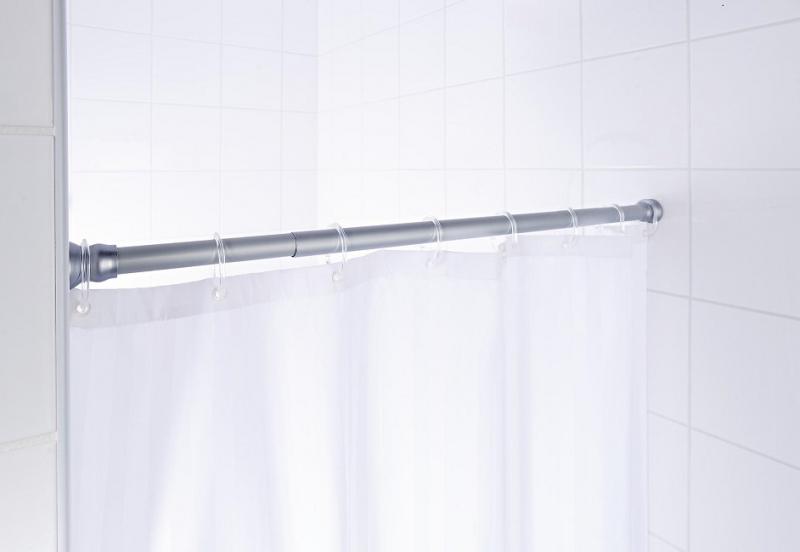 Ridder Teleskopstang - Krom - 110-185 cm Denne teleskopstang bruges på badeværelset til ophæng af badeforhæng. Stangen er produceret i aluminium i en kromfarvet finish med hvide ender af plastik. Vægbeslagene for enden af teleskopsstangen er udstyret med en anti-slip funktion. Teleskopstangen er fleksibel, da den er justerbar i længden, så den passer til dit badeværelse. Desuden kan den nemt beskæres efter ønske. Teleskopstangen er nem at montere, da den blot fastspændes mellem væggene uden boring.