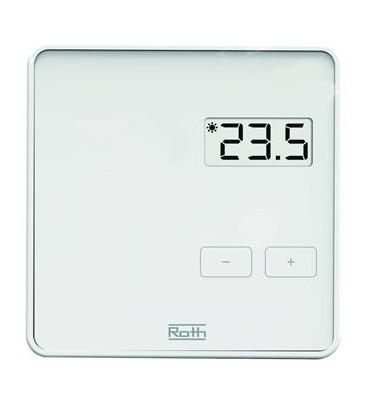 Roth Project Trådløs rumtermostat med display Roth Project rumtermostat med tydeligt display i et glat og rengøringsvenligt design. Anvendes sammen med Project kontrolenhed. Mulighed for midlertidig tilsidesættelse af den indtastede komforttemperatur i et udvalgt antal timer, hvorefter temperaturen vender tilbage til den forrige indstilling samt mulighed for at låse knapperne for at undgå utilsigtet drift. Med nem aflæsning af batteriniveau. |