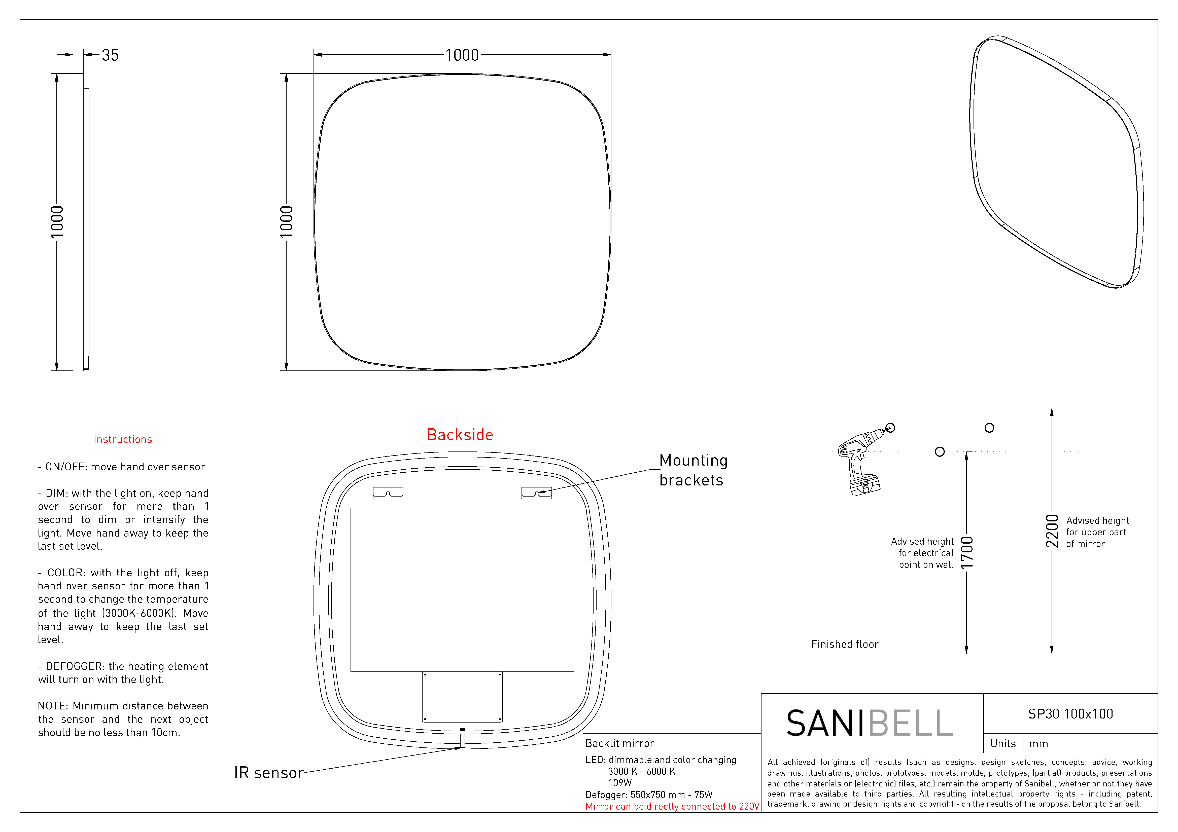 Sanibell Ink SP30 superellipse spejl m/backlight, varme og sensor 100 x 100 cm - Børstet kobber Sanibell Ink spejl i superellipse form: Den afrundede firkantede form er både bryder linjerne på badeværelset, men virker på samme tid samlende for det visuelle udtryk i indretningen. Spejlet er indrammet af en flot ramme, som er slank forfra, men fra siden er bredere. Spejlet lyser væggen bag sig op med sit indirekte lys, som kan justeres i både styrke og farvetemperatur ved brug af sensorkontakten i bunden af spejlet. Udover backlight har spejlet også indbygget varmefelt, hvilket betyder at du kan nyde den luksuriøse oplevelse af et dugfrit spejl - selvom om du lige har taget et langt varmt bad. Specifikationer:
