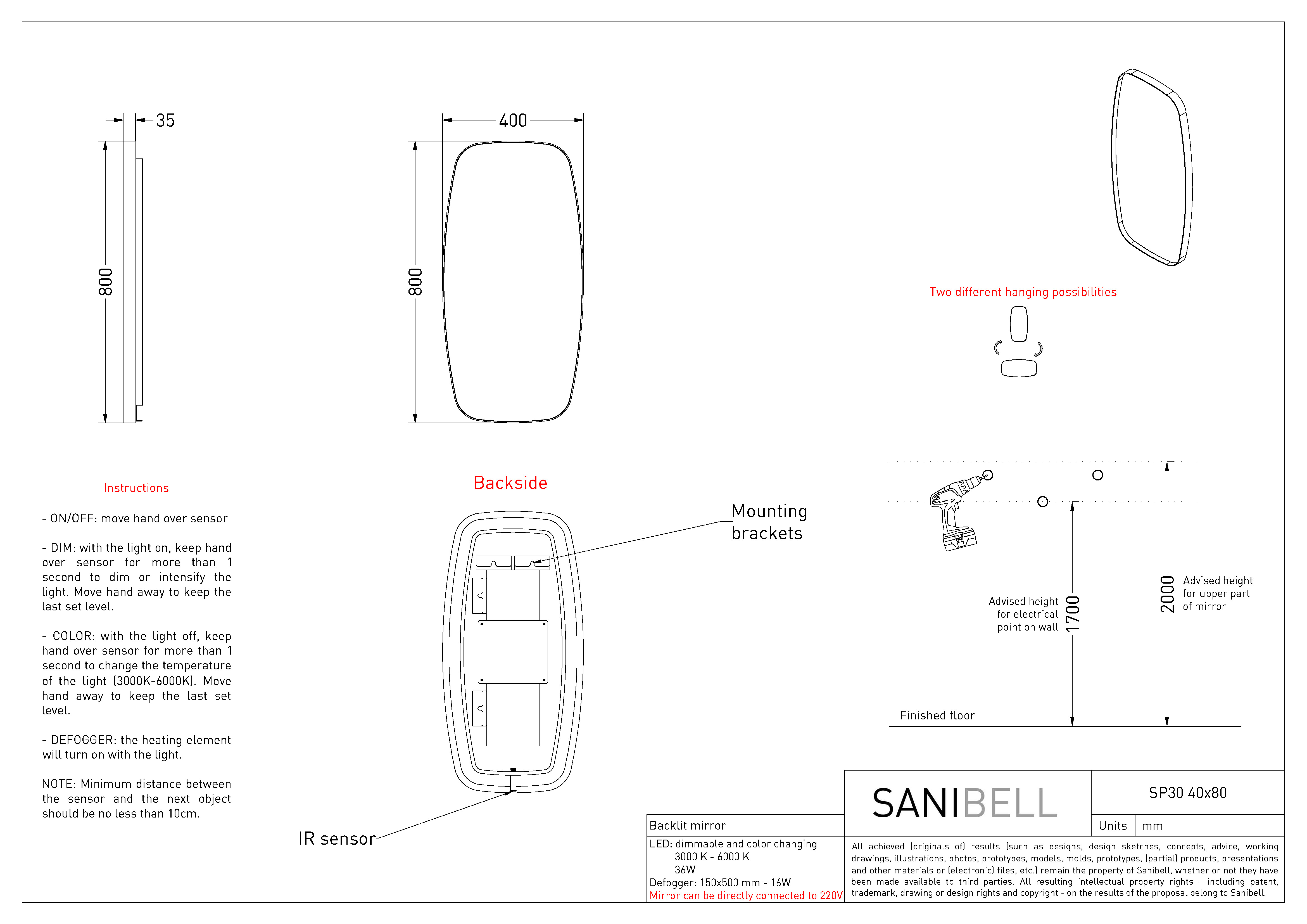 Sanibell Ink SP30 superellipse spejl m/backlight, varme og sensor 40 x 80 cm - Børstet gunmetal Sanibell Ink spejl i superellipse form: Den afrundede firkantede form er både bryder linjerne på badeværelset, men virker på samme tid samlende for det visuelle udtryk i indretningen. Spejlet er indrammet af en flot ramme, som er slank forfra, men fra siden er bredere. Spejlet lyser væggen bag sig op med sit indirekte lys, som kan justeres i både styrke og farvetemperatur ved brug af sensorkontakten i bunden af spejlet. Udover backlight har spejlet også indbygget varmefelt, hvilket betyder at du kan nyde den luksuriøse oplevelse af et dugfrit spejl - selvom om du lige har taget et langt varmt bad. Specifikationer: