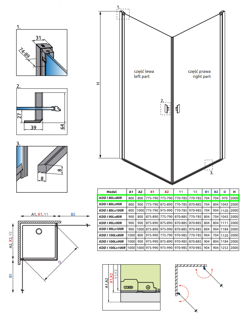 Strømberg Noma 120 bruseniche - 80x80 cm - Klar glas/krom