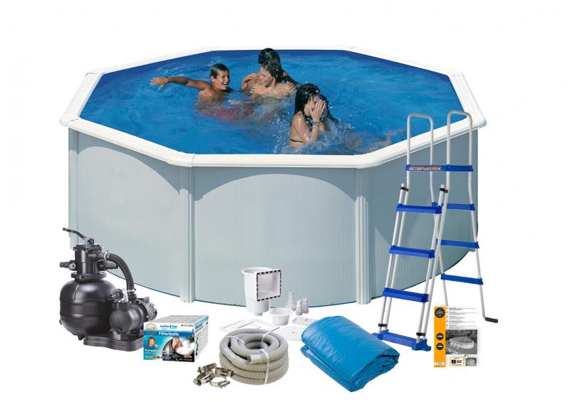 Swim & Fun Pool Basic Ø350 x 120 cm - Hvid Poolpakke komplet med rund fritstående familiepool og stor tilbehørspakke Ø3,5 x 1,2 m
