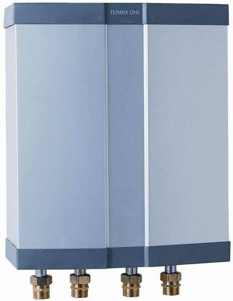 Efter montering og indregulering skal du ikke efterregulere varmtvandstemperaturen, Termix One's unikke styring sørger selv for at holde komforttemperaturen på det varme vand også isommerperioder, hvor radiatorerne kan være frakoblet. Termix One's effektive varmeveksler forbedrer driftsøkonomien hos forbrugeren og hos fjernvarmeværket, som kan nedsætte mængden af cirkulerende vand.Termix One leveres med smukt stålgrå kabinet designet af Jacob Jensen, der understreger det høje kvalitets og komfortniveau, som er kendetegnende for Termix One. Vandvarmeren kan også leveres i en variant uden kabinet.