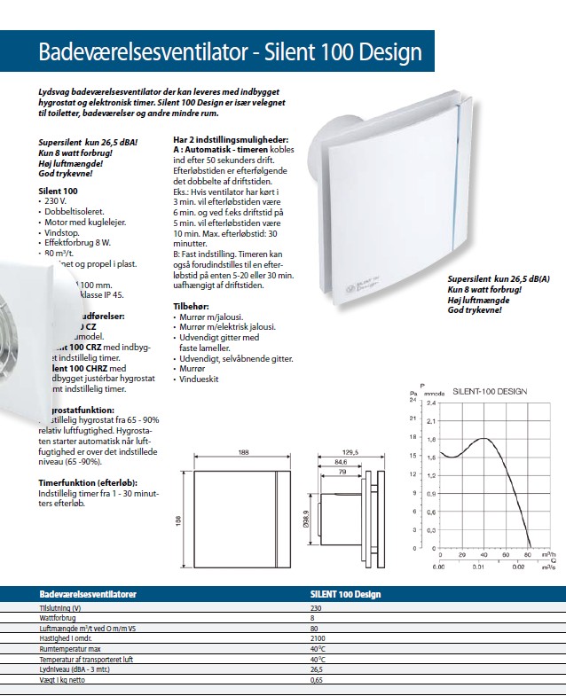 Kapslingsklasse IP 45. Supersilent kun 26,5 dBA!