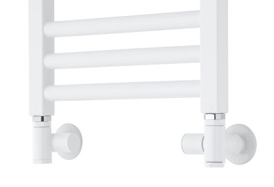 Tilbehør: Der medfølger rørafdækninger med rosetter i plast til ventilsættet. De er 50 mm lange og rosetten dækker 60 mm. De kan afkortes efter behov. De passer ind over et ½” rør. De findes i hvid og krom.